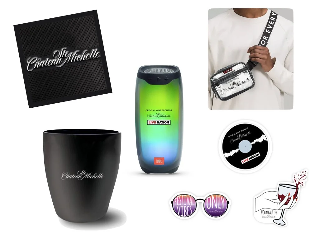 Chateau Ste. Michelle, Washington’s largest winery, partnered with Live Nation to become the official wine brand across hundreds of U.S. music venues. The partnership marked a bold step into the live music world, requiring a launch that felt disruptive, premium, and scalable. Our task was to design and deliver a fully integrated brand activation — from pre-announcement influencer kits to nationwide merchandise and POS — that would elevate wine into the live music experience and make CSM unforgettable on stage and off.